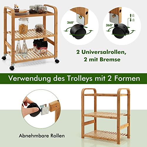 【Praktischer rollender Servierwagen】 Dieses Lagerregal auf Rädern mit 2 Universalrollen ermöglicht es Ihnen, es überall hin zu schieben. Es gibt 2 feststellbare Rollen, um sicherzustellen, dass der Wagen ruhig bleibt, wenn Sie es so brauchen. Und die Seitengriffe bieten Ihnen arbeitssparende Griffpunkte, wenn Sie den Trolley bewegen.
